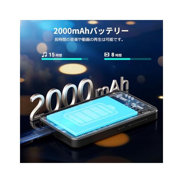 【長時間使用可能】2000mAhの大容量バッテリーを搭載し、通勤途中や出張する時や、長時間の映画、電子書籍、ドラマ、音楽鑑賞などを安心にご利用いただけます。USB Type Cポート&独立した3.5mmのヘッドフォンジャックを備え、充電と音楽聞くことは互いに邪魔しません、様々なニーズに対応できます。