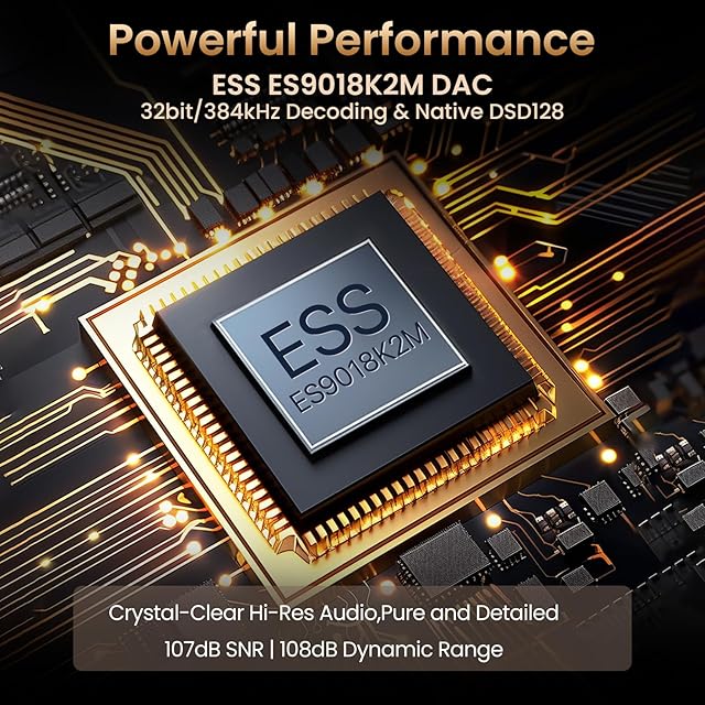 ♫ 【ハイレゾロスレス音楽プレーヤー】高度なESS ES9018K2M DACを搭載し、32ビット/384kHzのデコードおよびネイティブDSD128に対応。107dBのSNRと0.008%のTHDを実現。32Ωで70mW(1.5Vライン出力)を供給し、高インピーダンスのヘッドホンも駆動可能。FLAC、MP3、WAV、AAC、OGG、AIFF、WMA、APE、DFF、およびネイティブDSD(最大128bit/5.6MHz)の歪みのない再生をサポート。