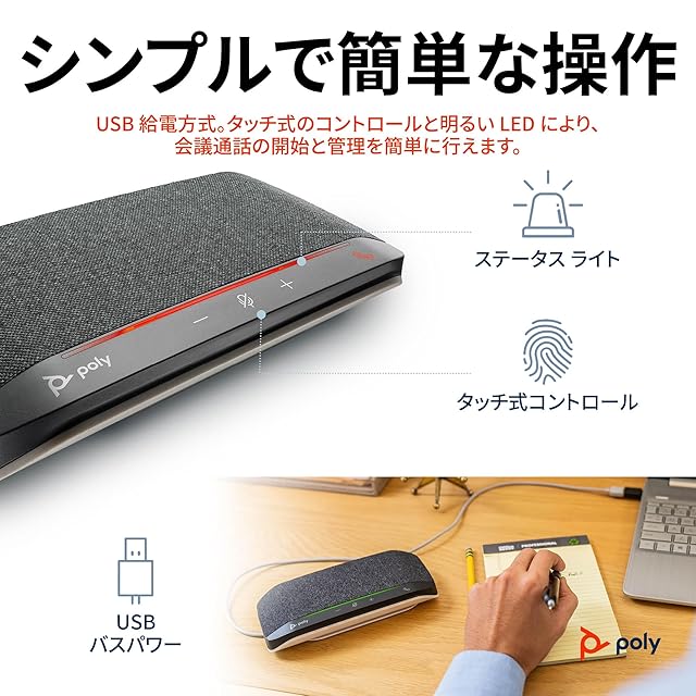 Poly スピーカーフォン Sync 10 (国内正規品) USB-A USB-C 接続 【2年間メーカー】 全二重音声 IP64防塵防水 ノイズやエコーを低減 ポータブル 会議用マイク 防水 PC 7S4M6AA