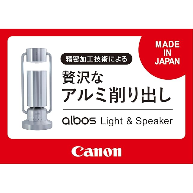 ■「アルミ削り出し」だから叶った、美しさと精悍さを兼ね備えたボディ キヤノンが長年培ってきた"高品質なものづくり”と"本質を追求するデザイン”を「albos Light&Speaker」にも反映するために、ボディ素材にはアルミニウムを採用。 1000分の1ミリ単位で調整可能な旋盤加工によってアルミニウムを削り出し、精悍さと美しさを感じるボディに仕上げています。