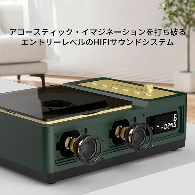 Thinkya CDプレーヤー Bluetooth受信/送信 2.1CH ボトム・バス振動板 ステレオ スピーカー内蔵 クラシック CDプレイヤー ラジカセ 卓上置き 木製 ラジオ 一機多用 FM/USB/光ケーブル対応/AUX A-Bリピート ポータブル リモコン付き ノイズリダクション 音楽再生/家族用,小規模店舗の装飾/スポーツ/ヨガ/胎児教育/素敵なプレゼント(グリーンゴールド)