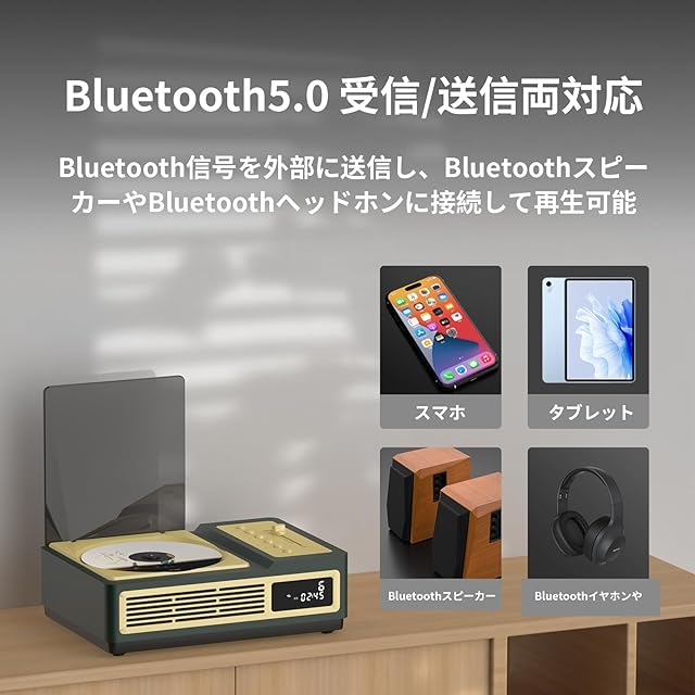【Bluetooth受信/送信両対応】従来のCDプレーヤーと比べ、本製品はBluetooth受信とBluetooth送信の両方の機能に対応し、スマホ、タブレットなどのデバイスだけではなく、BluetoothイヤホンやBluetoothスピーカーなども接続が可能で、より自由に音楽を楽。完全なデジタルの状態のままオーディオ信号を送ることができ、高音質で確実にデータ転送することができます。