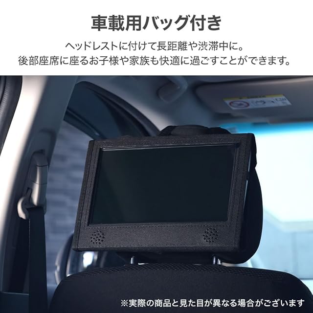 車載バッグ付きで、ヘッドレスに付けて長距離や渋滞中に。後部座席に座るお子様や家族も快適に過ごすことができます。