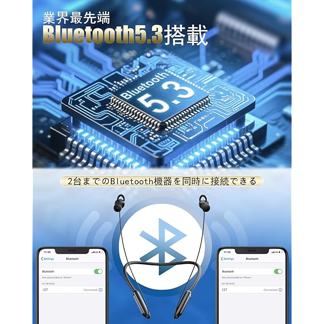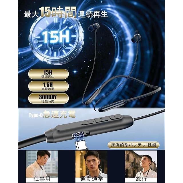 商品名:イヤホン 首掛け Bluetoothイヤホン ネックバンド型ワイヤレス 2025新登場 Bluetooth 5.3 Hi-Fi音質 1回の充電で最大15時間連続使用可能 マグネット搭載 IPX7防水防汗 自動ペアリング ハンズフリー通話 超軽量 音量調節 マルチポイント対応 ゲーム/音楽/テレワーク/チャット/Siri対応 iPhone/Android対応