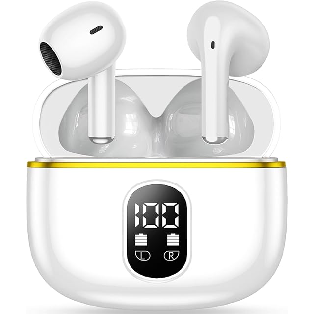 イヤホン bluetooth ワイヤレスイヤホン yjjc ブルートゥースイヤホン 無線 接続瞬時 Hi-Fi Type-C急速充電 ぶるーとぅーす 小型/軽量 LEDディスプレイ搭載 WEB会議/運動/ゲーム/テレワーク/通学/通勤/スポーツ/音楽用iPhone/Android対応 (White.01)