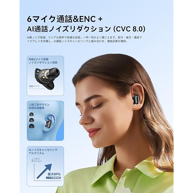 【ENC搭載 + AI通話ノイズリダクション】6つのシリコンマイク搭載 こちらのヘッドフォンは、ENC AIスマートノイズキャンセリング技術を搭載しており、周囲の騒音を正確に識別し、効果的に排除します。騒がしい街中や混雑した電車、オフィスなど、どんな環境でもクリアな通話を実現。AIによるノイズキャンセリングは、音声の出力を最適化し、自然な声で通話ができます。ビジネスでもプライベートでも、毎回の通話がスムーズに、ストレスフリーに。どんなシーンでも、クリアで効率的なコミュニケーションをお楽しみください。