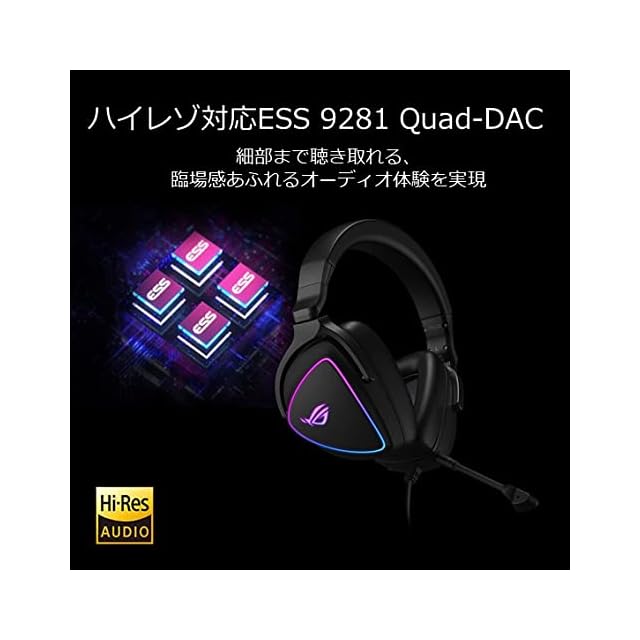ASUS ゲーミングヘッドセット ROG DELTA S AIノイズキャンセリングマイク ハイレゾESS9281 MQAレンダリング技術 USB-C PS5/PS4/PC/Switch/スマートフォン 有線 軽量設計 国内正規品
