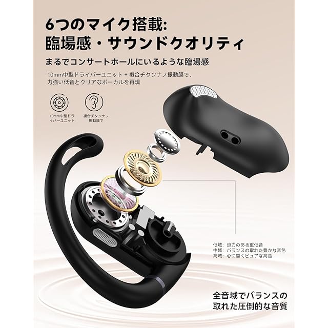 bluetooth ワイヤレスイヤホン 6つシリコンマイク搭載 AIスマートENC通話90時間再生2025最新bluetooth 5.4耳掛け型オープンイヤー イヤホンIPX7防水 (ミニマリスト)