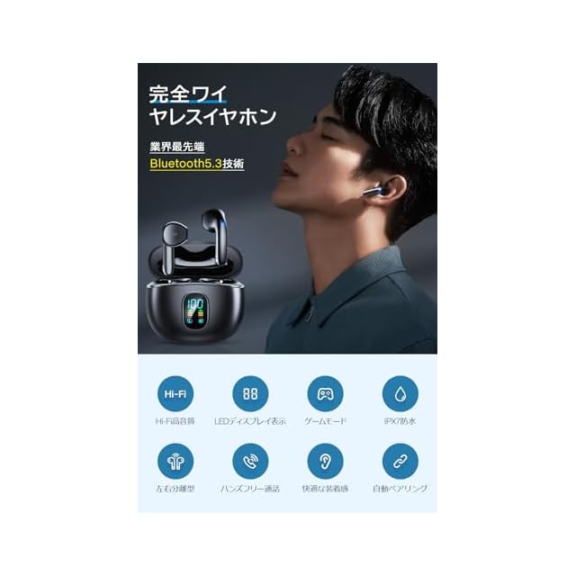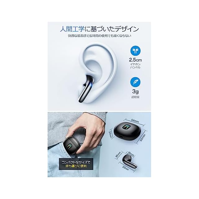 【軽量で快適な装着感】片耳わずか3gの超軽量設計で、長時間の使用でも耳に負担がかかりません。耳の形に合わせた人間工学に基づくデザインにより、しっかりとフィットし、外部のノイズを効果的に遮断。通勤や通学、スポーツ中でも快適に使用できます。激しい動きの中でも外れにくく、常に音楽や通話を楽しむことが可能です。軽量かつ快適なデザインは、日常生活のあらゆるシーンで活躍し、ストレスのない使用体験を提供します。