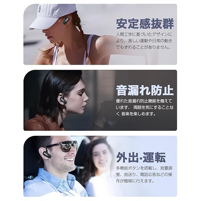 あらゆるシーンに最適な、頑丈で快適なデザイン:【落ちにくい】チタン合金メモリーフレームを採用し、耳にフィットする形状記憶設計で、ランニングや激しい運動でもズレにくい仕様。【生活防水】防汗防水により、トレーニング時の汗や突然の雨にも対応。【万能対応デザイン】軽量ながらも耐久性に優れ、日常使いからアウトドアまで安心して使用できます。また、耳を塞がない開放型設計のため、運転中や自転車通勤時でも周囲の音を確認可能。「1台で通勤・運動・仕事・日常すべてをカバー」 する、マルチシーン対応の万能イヤホンです。