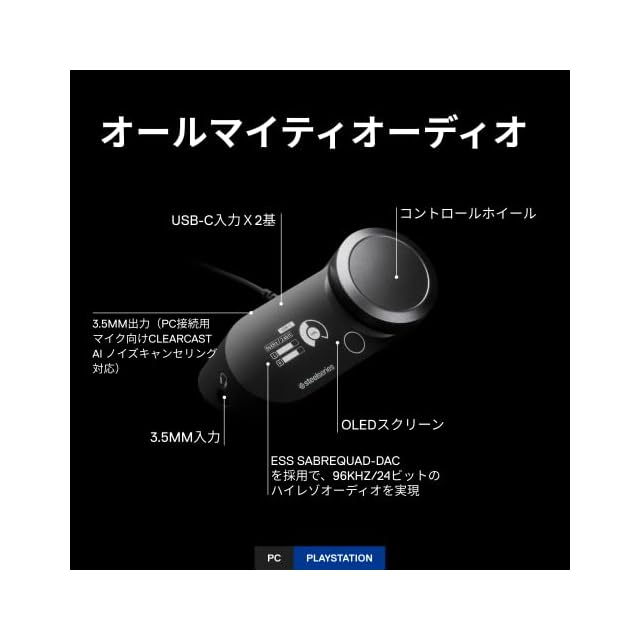 SteelSeries GameDAC Gen 2 有線 ミックスアンプ PS5 PS4 PC MixAmp ゲーミングヘッドセット用 ハイレゾ サラウンド 3.5mmオーディオジャック 光デジタル端子 USB 60262