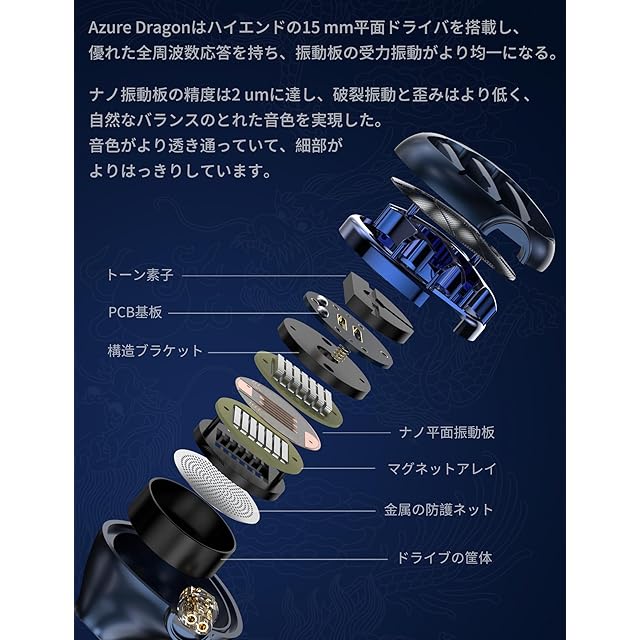 商品名:TRN Azure Dragon 青龍 イヤモニ ハイエンド 平面駆動 イヤホン ハイレゾ 平面磁気ドライバ モニターイヤホン 高遮音性 IEM イヤーモニター カナル型 イアフォン 有線 アルミハウジング 2.5/3.5/4.4mm 交換式プラグ QDC脱着式ケーブル