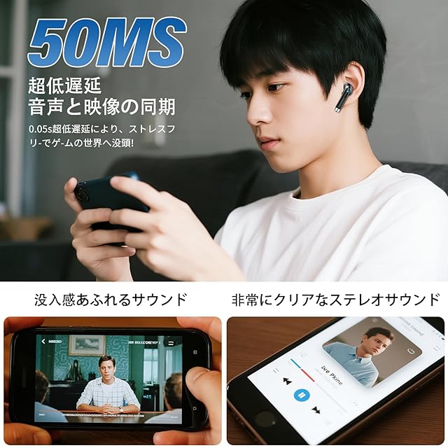 商品名:ワイヤレスイヤホン bluetoothイヤホン【2025年アップグレード版】AIスマート ENC通話ノイズキャンセリング 最新Bluetooth5.4 ブルートゥースイヤホン 全音域HI-FI音質 低遅延 接続瞬時 Type-C 急速充電 片耳/両耳 WEB会議/運動/ゲーム/テレワーク/通学/通勤/スポーツ/音楽用 iPhone/Android対応