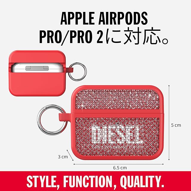 DIESEL AirPods Pro2 ケース/AirPods Pro ケース TPU スワロフスキー クリスタル おしゃれ カバー ブランドロゴ 保護 (ディーゼル AirPodsPro 第1世代 / 第2世代 Swarovski ケース, 赤 レッド)