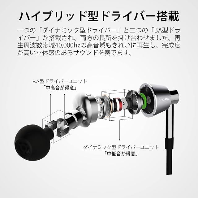 1MORE 有線 イヤホン ハイレゾ音源対応 トリプルドライバー Hi-Res ステレオ Hi-Fiサウンド ビジュアルグランプリ(VGP) ノイズ遮断 カナル型 リモコン・マイク付 カナル型 E1001 (シルバー)
