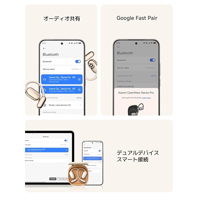 Xiaomi OpenWear Stereo Pro オープンイヤー イヤホン OWS ワイヤレス マルチドライバー&デュアルBA搭載 Harmanチューニング 音漏れ低減 360°立体音響 録音機能 IP54防滴防塵 長時間装着に最適 ゴルドー