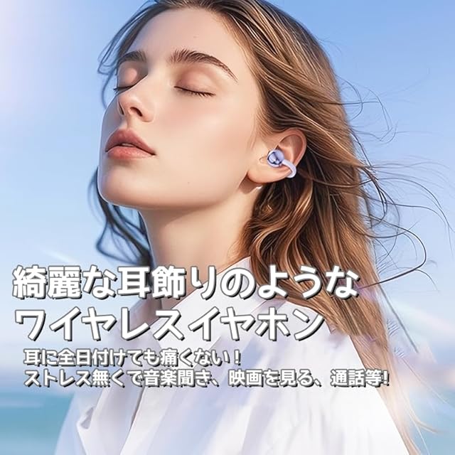 【綺麗な耳飾りのようなイヤホン、耳に全日付けても痛くない!ストレス無く快適で音楽聞き、映画を見る、通話、ゲーム、会議】 真のイヤーカフbluetoothイヤホンとして、よりクリア、より快適です。オーディオ向けの小型で高度に統合されたソリューションに似ており、チップ技術とコンピューティング能力の向上により、複数の音源ポイントを使用し、動的なモニタリングと計算を通じて合成音源を形成できます。合成音源間の位相関係を動的に調整して外部音の拡散を抑え、きめ細かなイヤ内音の伝達性能を高めます。 また、人間の耳が敏感ではない周波数範囲の音質の詳細を人間の耳が敏感な周波数範囲に移動させ、聴覚の健康に対する音エネルギーの脅威を軽減しながら、より良い音質パフォーマンスをもたらします。
