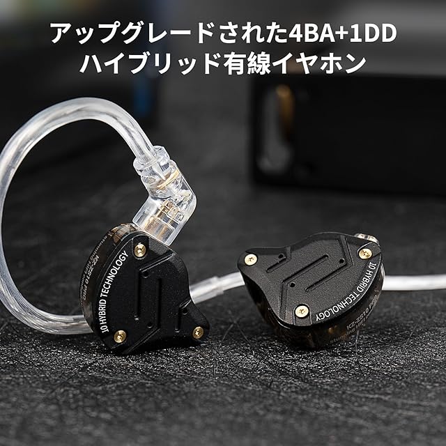 KZ ZS10PRO イヤホン 有線 4BA+1DD カナル型イヤホン ゲーミングイヤホン イヤモニ アルミニウム合金+樹脂製筐体インイヤーモニター 有線イヤホン マイク付き 脱着式耳掛け HIFI音質 重低音 ノイズキャンセリング 音楽モニター/スポ一ツ/ゲーム/ライブ放送(ブラック·マイク付き)