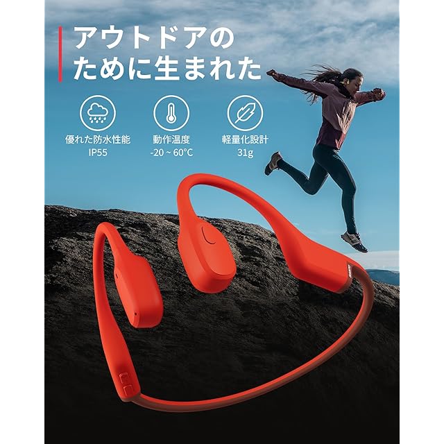 【スポーツに最適】 プレミアムシリコンとチタン合金を使用しており、わずか30.6gの軽量化設計です。重量バランスに配慮した作りなので、長時間のトレーニングでも耳への負担が少なく快適に使えます。IP55の防塵・防水性能も備え、汗や軽い雨にも安心してお使いいただけます。(水道での直接的な洗浄は避けていただきますようお願いいたします)