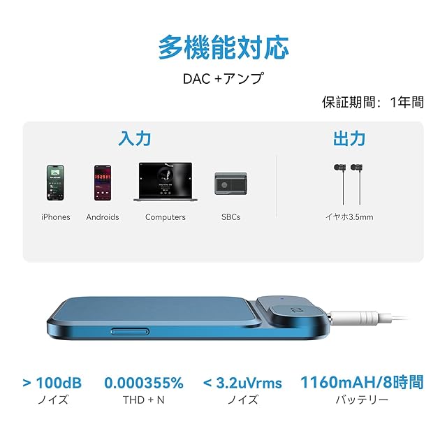 【先進的Hi-Fi DAC・高音質】高性能のDACチップ「ESS ES9281AC Pro」を搭載し、Apple Music・Tidal・Qobuzなどのストリーミングアプリのロスレス音楽(音質のロスが少ない高音質)を存分に楽しめます。
