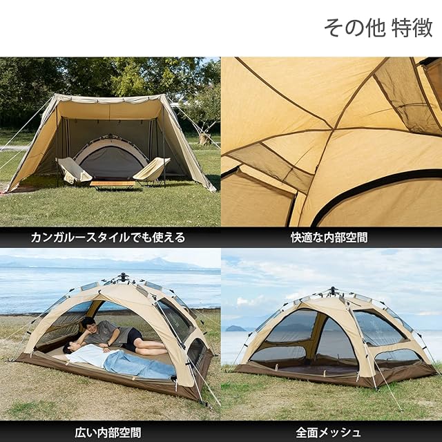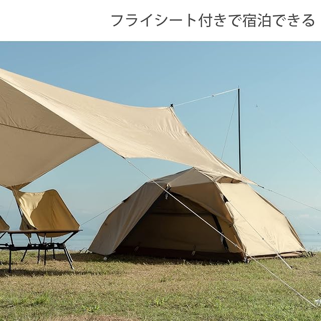 DOD(ディーオーディー) わがやのテントS 2人用 快適 簡単 ワンタッチ ポリコットン インナー UVカット T2-981-TN ベージュ サイズ:(約)W240×D220×H120cm