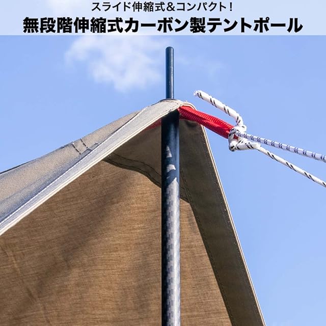 ✅【スライド伸縮式&コンパクト! 無段階伸縮式カーボン製テントポール】 カーボン製のスライド伸縮式テントポール!高さは無段階で43~180cmに簡単に調節ができます。安心の最大直径23mm。収納時もコンパクト!