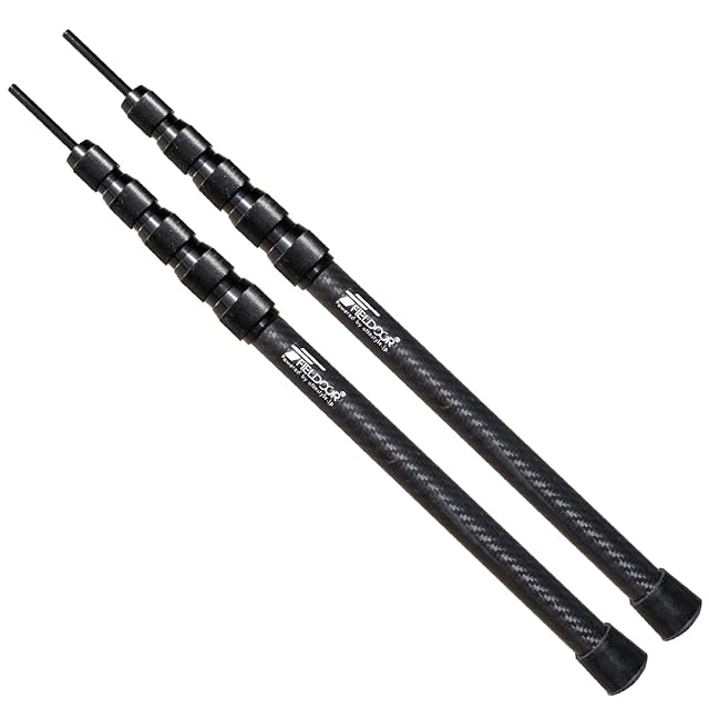 FIELDOOR 伸縮式 カーボン タープポール テントポール 2本セット 軽量 コンパクト 約200g(1本あたり) 収納サイズ 約48cm 6継無段階調節 直径23mm 振り出しタイプ
