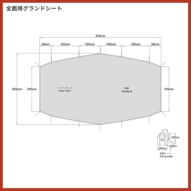 【2 つのサイズをご用意 】【インナーテント用グランドシート】インナーテント部分を覆う。 【全面用グランドシート】インナーテント用と前室部分を覆える特殊形状となっており、荷物を置きとしても便利な形状です。