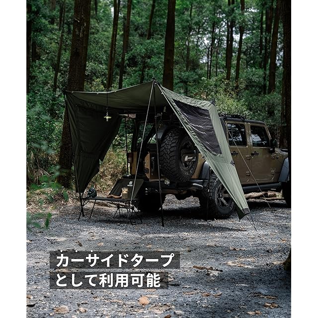 【テント前幕として・スペースの拡張】ROC SHIELDテントやCONIFERテントなどと組み合わせて、パーフェクトな色合いだけではなく、テント内の使用空間を倍になります!内部の居住空間を広げ、1~2人余分に寝てもまったく問題なし