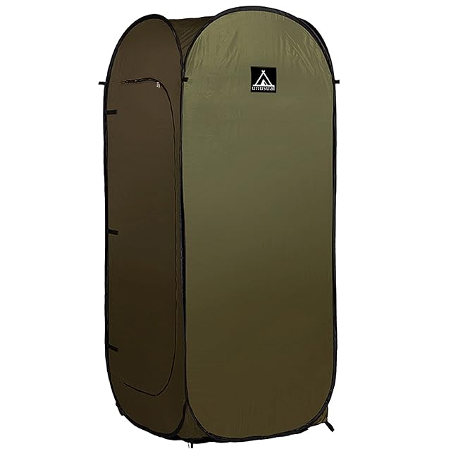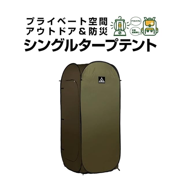 輝楽 シングルタープテント 1人用 防災テント 個室 災害時トイレ トイレットペーパーベルト付 ワンタッチテント キャンプ 簡単設置 収納バッグ付き 軽量 カーキ DK-T001-K