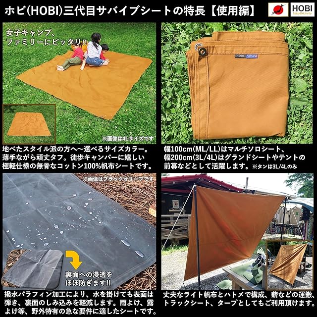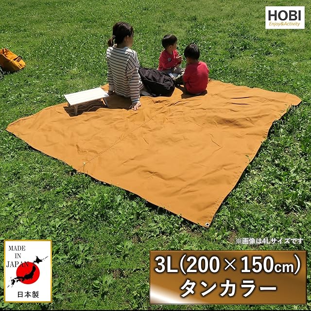 HOBI 三代目サバイブシート3L(150×200cm) タンカラー (interestカラーシリーズ)【日本製】グランドシート 極軽上質帆布 撥水パラフィン加工 [無骨でタフ] 軽量マルチシート 頑丈ハトメ×4 陣幕 キャンプ 焚火 風避け アウトドア レジャー マット 海 ビーチ おしゃれ タン [MADE IN JAPAN]