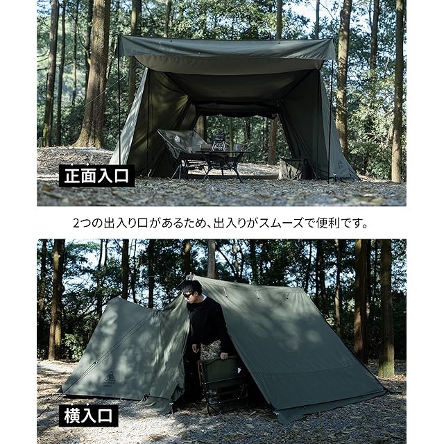 OneTigris SOLO Dark Shadow テント前幕 T/C 大型 焚き火陣幕 SOLO HOMESTEAD TCテントに対応 スペース拡大 サイドウォール仕様 難燃 スノースカート付き ファスナーフロントドア