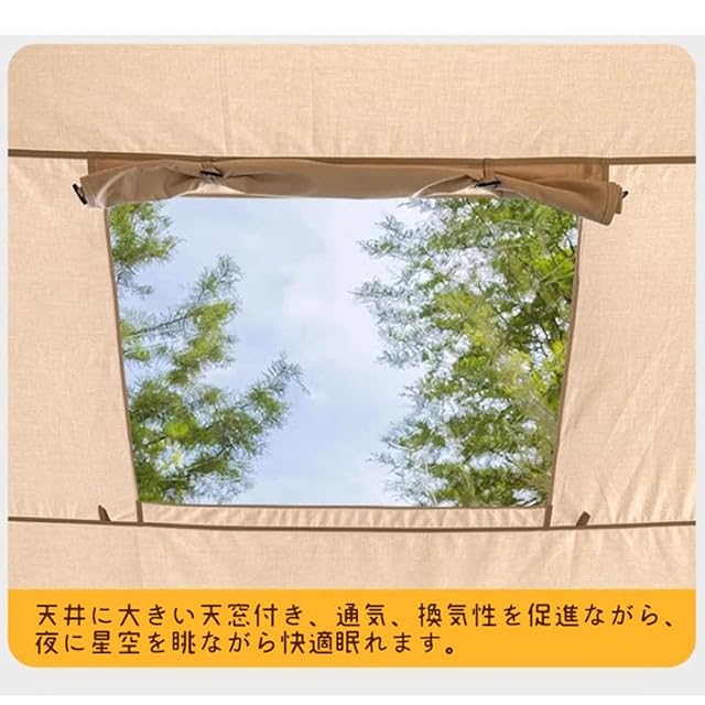 【高性能テント布地】テント本体はアウトドアテントに特化した高機能素材としてのTC 科技棉は、撥水性や耐候性を強化し、紫外線(UV)加工され、日差し、小雨や露から内部を保護します。