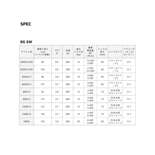 ベアリング(ボール/ローラー) :5/1 / 標準糸巻量PE(号-m) :3-300 4-220
