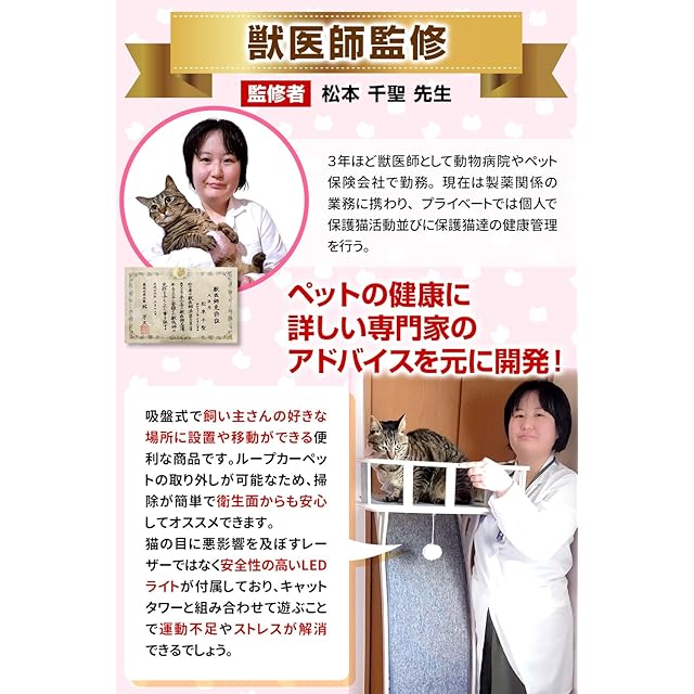 【 獣医師 監修の爪とぎもできる キャットタワー 】 ペット の 健康 に詳しい専門家のアドバイスを元に開発! 吸盤付きキャットタワー の ループカーペット は マジックテープ で取り外しできるため、 お手入れ も簡単。短め密度の高い ループカーペットマット は爪の引っ掛かりも良いので本能的に 爪とぎ をしたくなるでしょう。【 獣医師 監修の爪とぎもできる キャットタワー 】 ペット の 健康 に詳しい専門家のアドバイスを元に開発! 吸盤付きキャットタワー の ループカーペット は マジックテープ で取り外しできるため、 お手入れ も簡単。短め密度の高い ループカーペットマット は爪の引っ掛かりも良いので本能的に 爪とぎ をしたくなるでしょう。