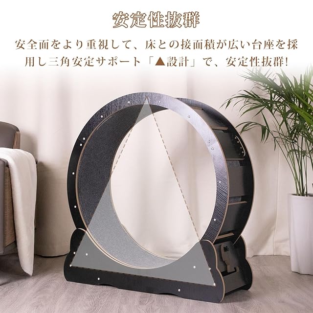 商品名:猫用ランニングホイール, 直径100cm, 高さ105cm, 運動促進, 安全ストッパー付き, ブラック