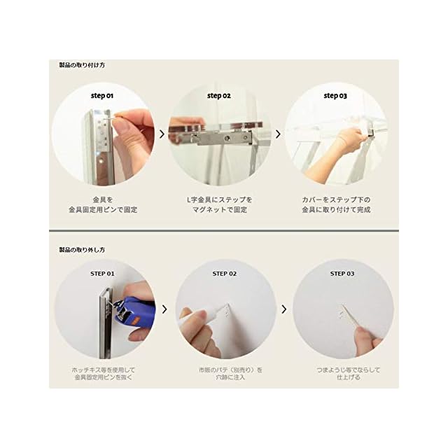 Catroad+の特徴<BR><BR>【DIY感覚で簡単な取り付け】<BR>Catroad+は、特別な工具を使用せず、石膏ボードに施工できるキャットステップです。<BR>穴の大きさは画びょう程度で、ビスに比べて壁へのダメージが少ないため、賃貸にお住まいの方にもおすすめです。<BR><BR>【レイアアウトは自由!】<BR>金具を固定すれば、ステップの取り付け、取り外しはワンタッチで簡単にできます。<BR>壁面のデザインをその日の気分に合わせていつでも変更でき、さらに、金具はステップの上部にも下部にも取り付けられるため、低い場所にも、ネコちゃんが好む高い場所にも取り付けることができます。