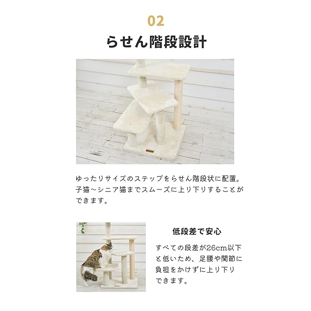 全高100cmのコンパクトサイズ。すべての段差が26cm以下と低く、子猫や短足猫でも安心。