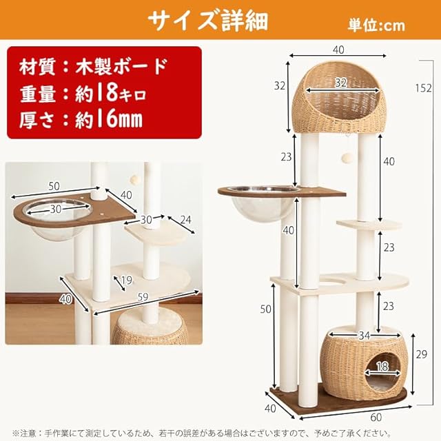 【耐久性と安定感】オランダベルベット張りの重厚な木製ボードで、どっしりとした安定感を実現しました。猫ちゃんが勢いよく飛び降りても倒れません。手編みのカゴは内部にスチールフレームを備えているため、長年ご使用いただいても型崩れせず、安心してお使いいただけます。