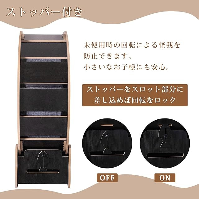 安全設計: ストッパー機能付きで、未使用時の回転を防止し、小さなお子様やペットの安全を確保