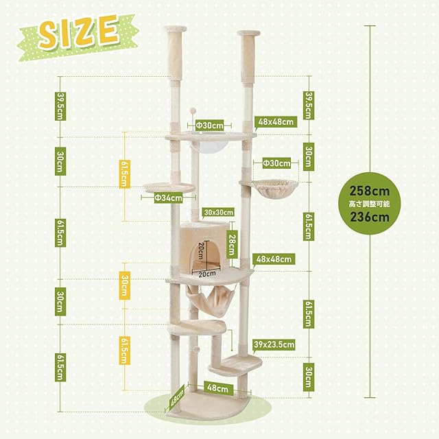 【多頭飼い】休憩できる場所はたくさんあるので、多頭飼いの場合でもご使用できます!可愛い猫ちゃんたちがここで遊んだり、寝たりして、見るだけでも楽しいo(^o^)o