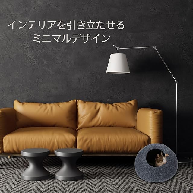Tails BASICS ペブル Pebble ねこ ハウス ベッド キャット ドーム 猫 ちぐら かまくら キャットケーブ ハンドメイド 洗える 冬 夏 通年 ウール フェルト シンプル ミニマル モダン (ダークグレー, M)
