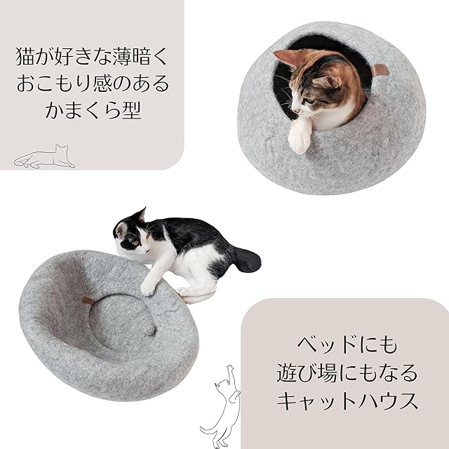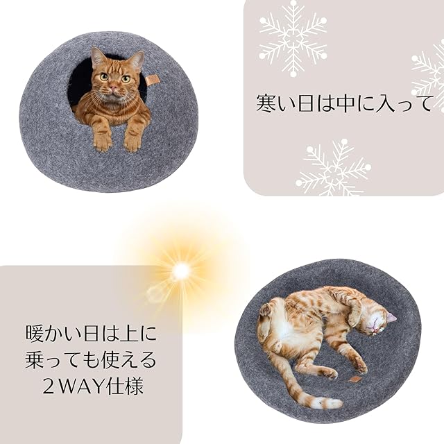 天然ウールで汚れに強く、もし汚れても丸洗いが可能。猫体重6kgまで使用でき、子猫から中型猫にピッタリ◎小さめの猫なら2匹でも使えます。