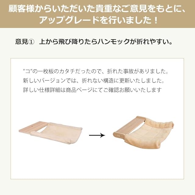 【材質・15mmの特注合板使用】縦方向の力に強く、大型の猫ちゃんが乗っても折れる心配がありません。安価で手に入りやすい12mmの合板を使用すればコストは約30%削減できます。しかし当店では猫ちゃんの安全を最優先に、あえて15mm厚の合板を使用しています。
