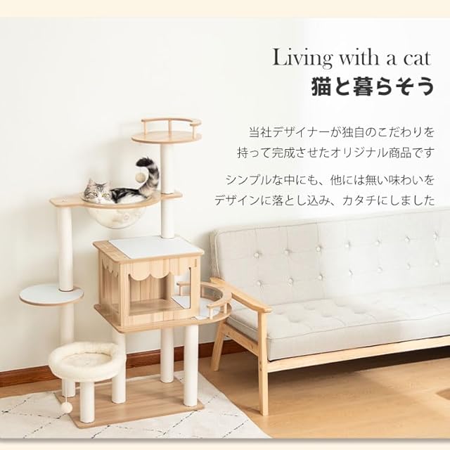 【なになにLife】 キャットタワー 木製 高さ128cm 大型猫 据え置き 大型 おしゃれ ワイドタイプ 多頭飼い 高級 豪華 スリム 猫タワー 宇宙船 中型 猫 爪研ぎポール 見晴台付き 天然麻紐 キャットツリー 宇宙船2個 クリアボウル 隠れ家 爪とぎ 安定 運動不足解消 麻紐 猫ハウス スクラッチ ホワイトコットン紐