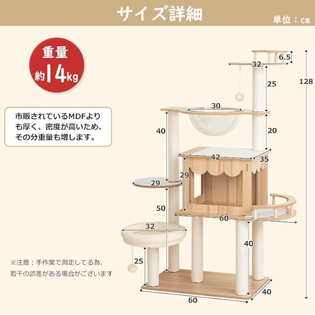 【サイズ・材質】大土台40*60cm、小土台20*30cm、高さ140cm、手作業の測定ですので、多少の誤差はご容赦ください。主な材質:木製ボードの表面に木目調プリント張り合わせ、紙管に麻紐巻き。