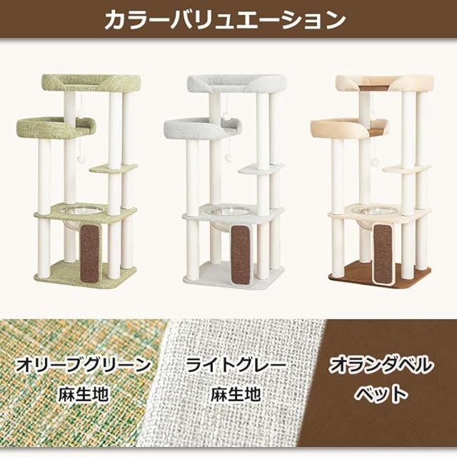 PETTIFUL キャットタワー 据え置き おしゃれ クッション入りベッド 高さ135cm 多頭飼い コンパクト シニア猫 冬夏兼用 夏用ござ付き 大型猫 ワイドベース 安定感 オランダベルベット 麻生地 転倒防止デザイン 壁際ぴったり インテリア性 展望台 猫ベッド シニア猫 成猫 子猫 登りやすい ふわふわ 広々 運動不足解消 省スペース スリム 爪とぎポール コットン紐 遊び場