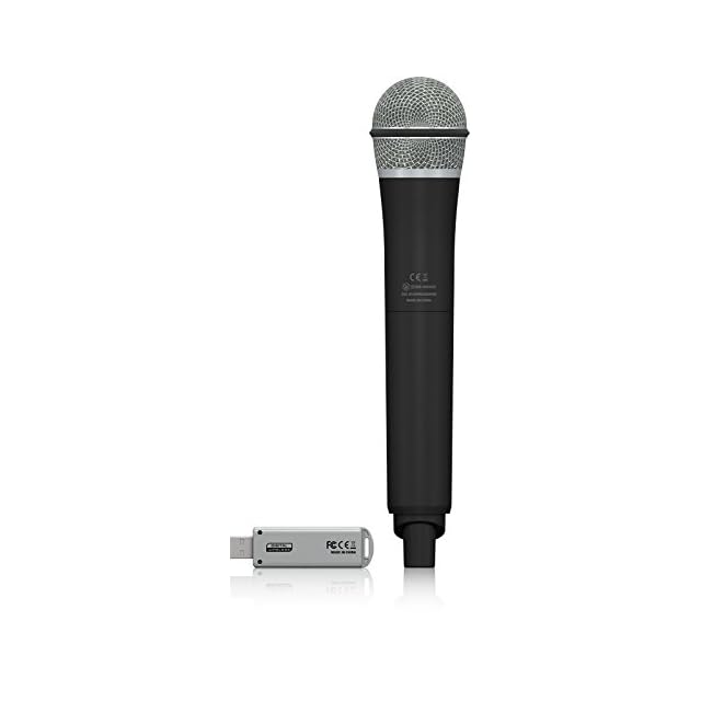 ULM300M 2.4GHz ワイヤレスマイクと ULM300D USB レシーバーのパッケージ。USB レシーバーをBehringer 対応機種に差し込んでワイヤレス接続