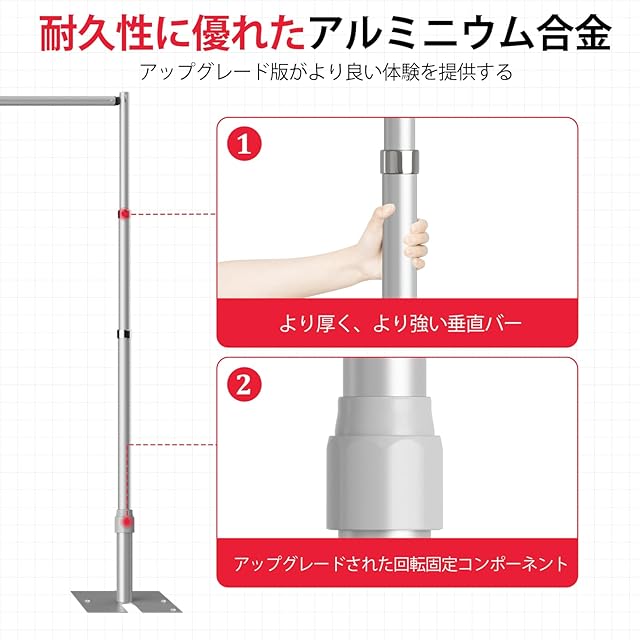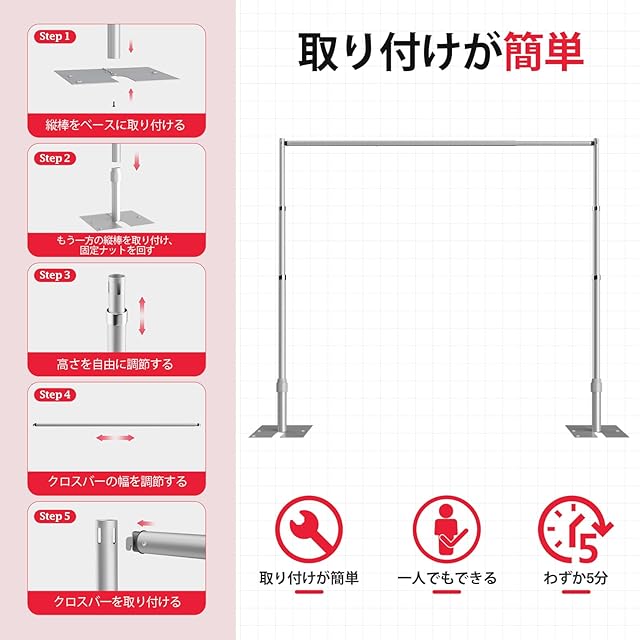 【パッケージ内容】短い垂直チューブ x2、調節可能な長い垂直チューブ×2、調整可能クロスバーx1、長方形ベース×2、ネジ×2