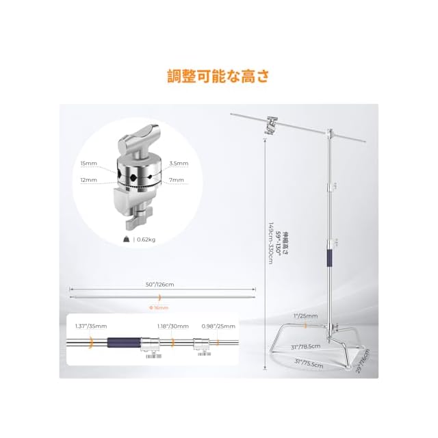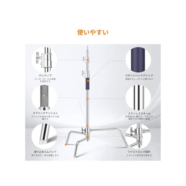 商品名:K&F CONCEPT センチュリースタンド 3.3M Cスタンド 撮影用 ライトスタンド ステンレス鋼 撮影スタジオ用 ストロボ ソフトボックス ディフューザー